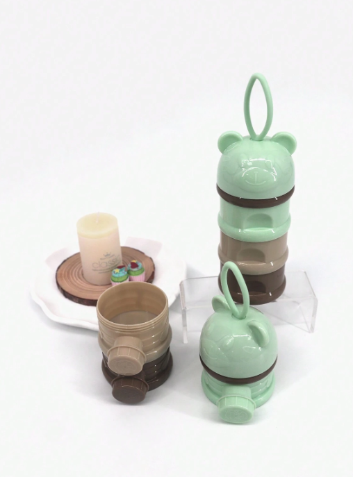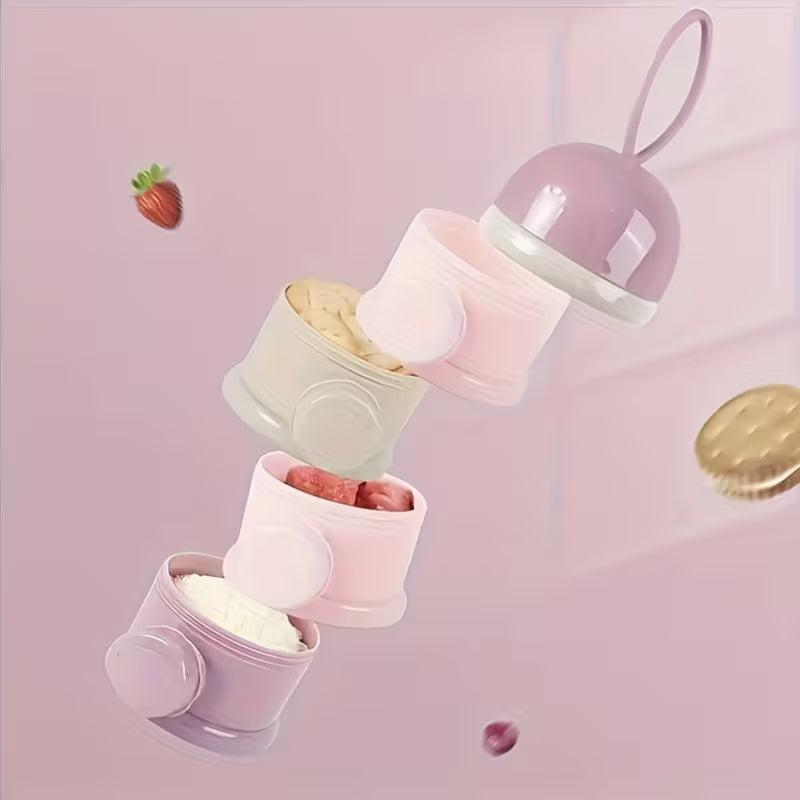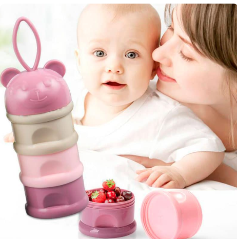 Dispensador práctico para leche en polvo que permite dosificar la cantidad exacta de fórmula de manera higiénica y rápida. Ideal para preparar mamaderas fuera de casa.